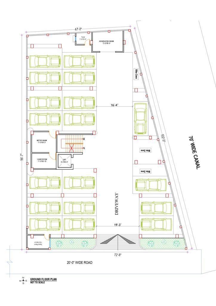 প্রতি তলায়: ৪টি ফ্ল্যাট (A, B, C, D)