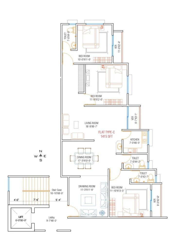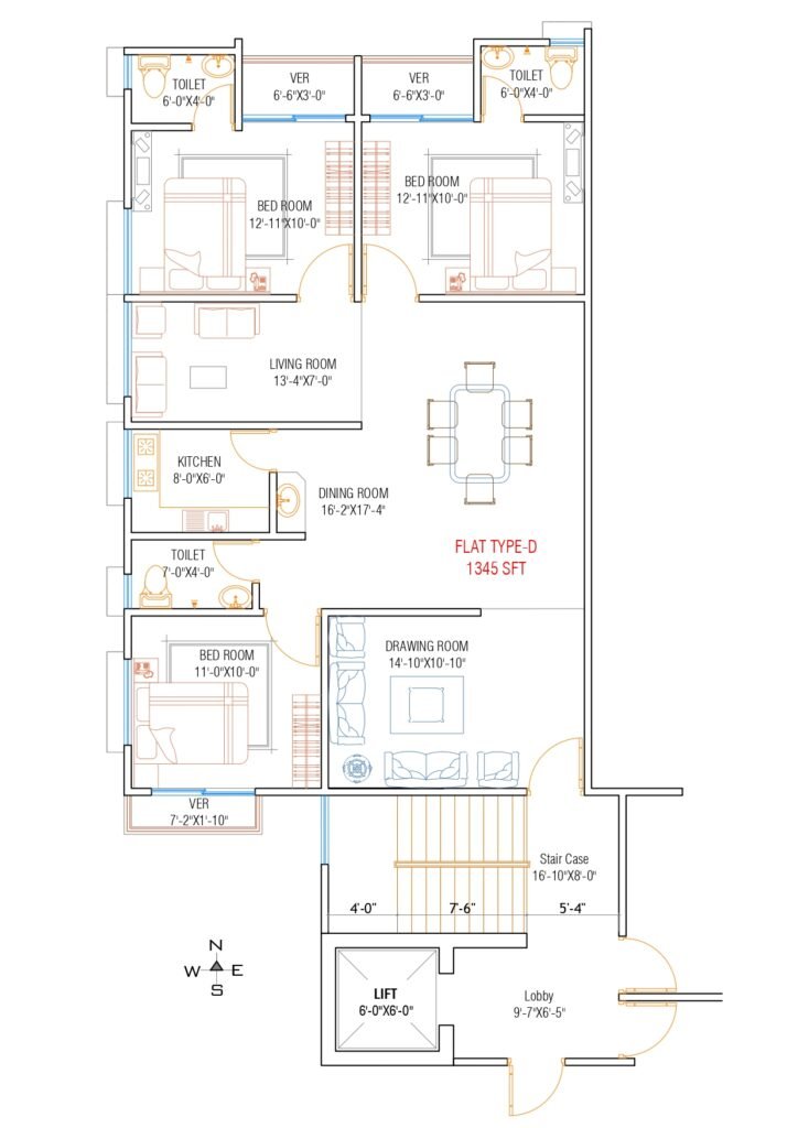 প্রতিটি ফ্ল্যাটের আকার (ভিতরে ভিতরে): প্রায় ১৩৫০ বর্গফুট