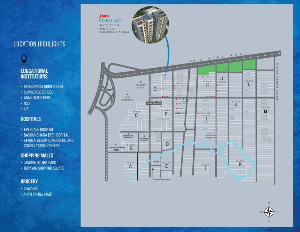 Located in a prime area, JAMS BD Palace offers unmatched connectivity and access to essential landmarks: