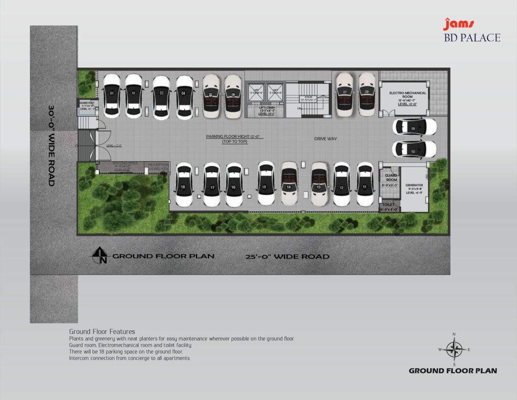Built on a generous 9 katha plot, JAMS BD Palace features 18 meticulously designed apartments, each offering spacious layouts, abundant natural light, and a refined aesthetic. With 18 dedicated parking spaces, convenience and security are guaranteed for every resident.
