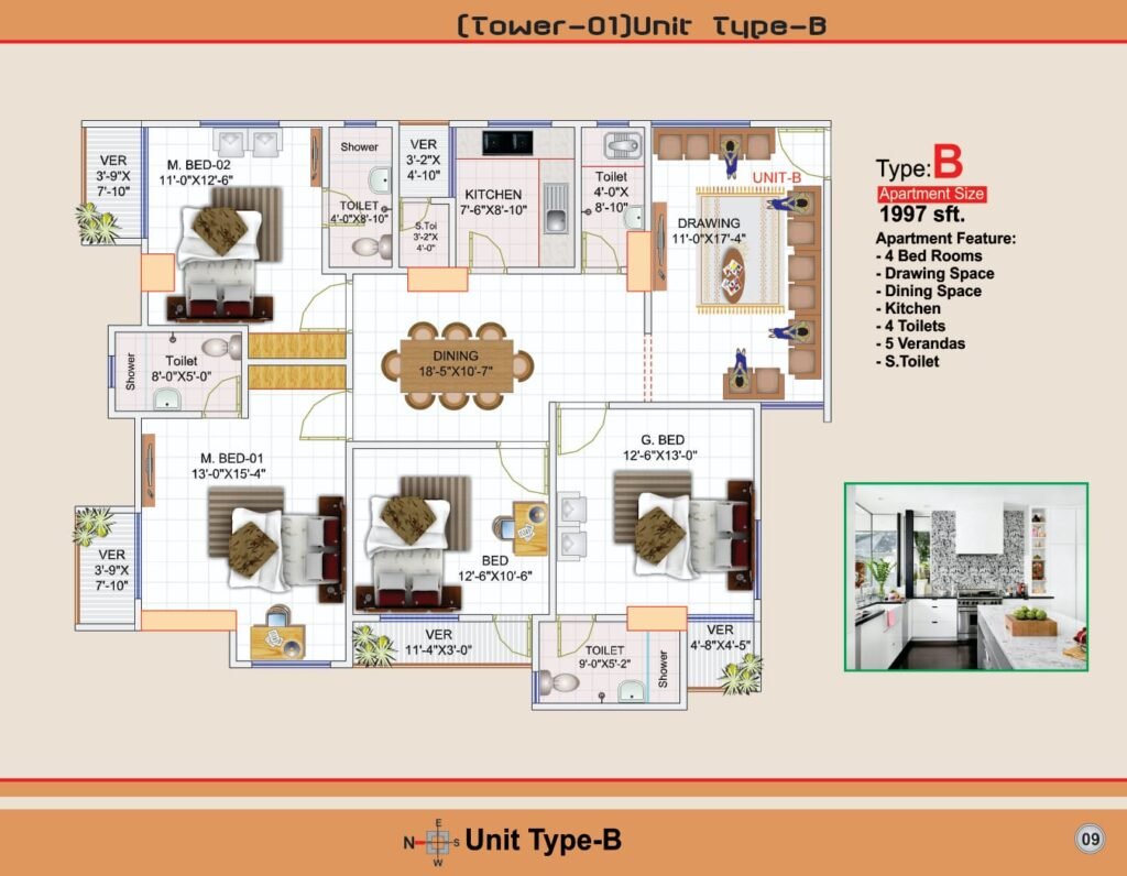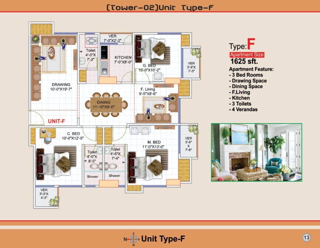 ✅ Apartment size: 1625 – 2818 SFT, suitable for medium to large families